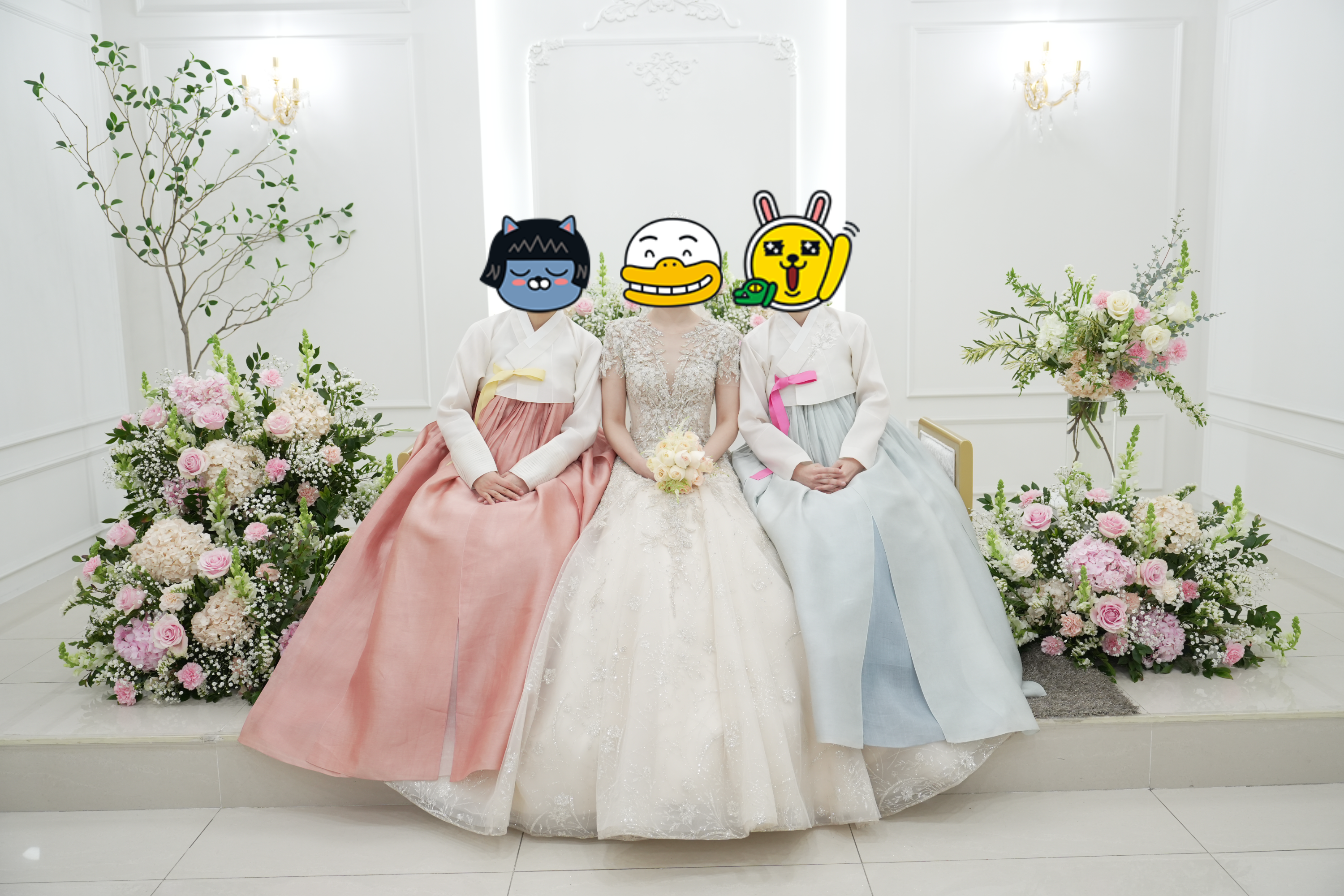 TIP. 여동생들 꾸밈비로 한복을 같이 입기로 했어요. 결혼식이 축제인 만큼 식장을 더 화사하게 해 줄 듯하여 결정했답니다.